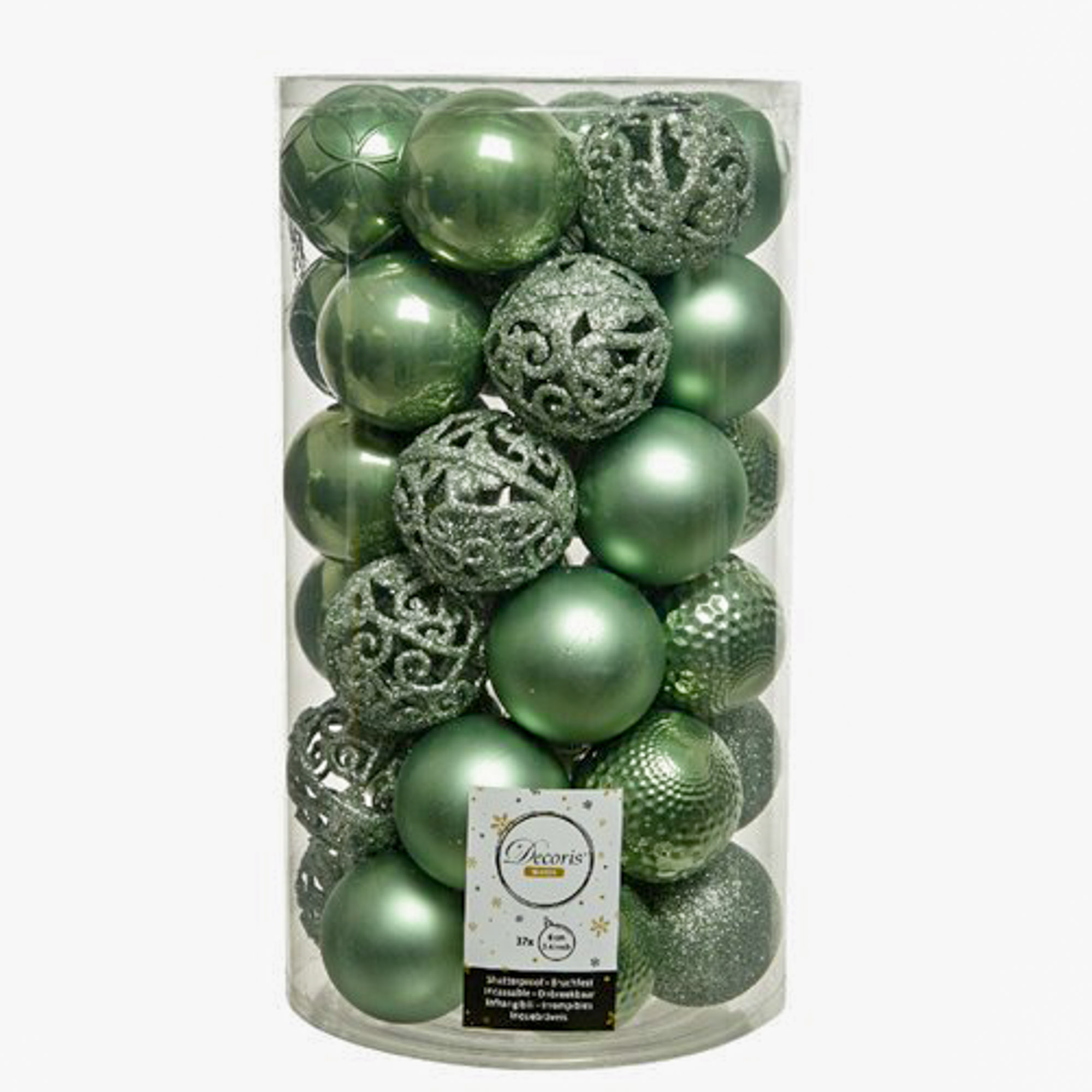 Kunststoff-Kugel-Sortiment "salbeigrün" 6 cm, Dose mit 37 Stück