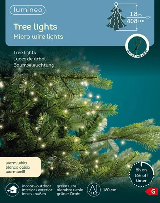 Startseite » Weihnachten » Lichterketten » LED-Baumbeleuchtung "Punkte an grünen Drähten" mit 408 Lichtern warm-weiß