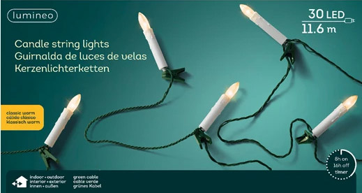 » » » LED-Kerzenlichterkette, 30 Lichter, grünes Kabel, klassisch warm