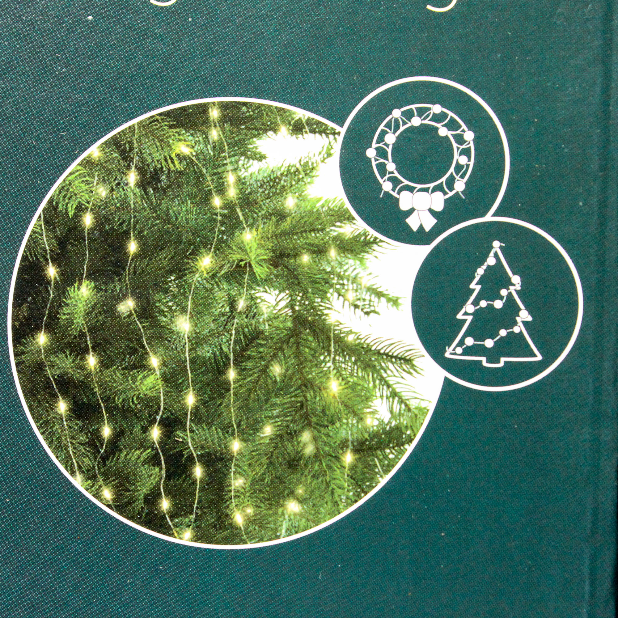 im Abstand von ca. 5 cm sind die 320 LED-Lichter im Fabrton warm-weiß an vielen 1 mtr langen Silberdrähten angeordnet - so entsteht ein hell und toll leuchtendes Lichtbüschel