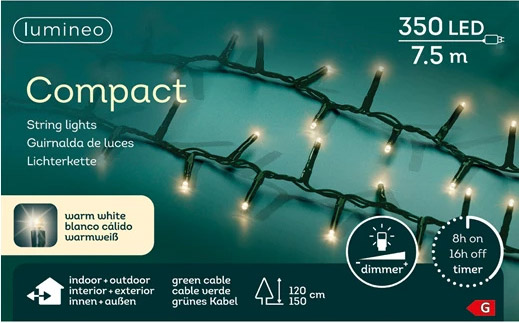 "Compact"-Kette grün mit 350 LED-Lichtern warm-weiß, 7,5 Meter lang