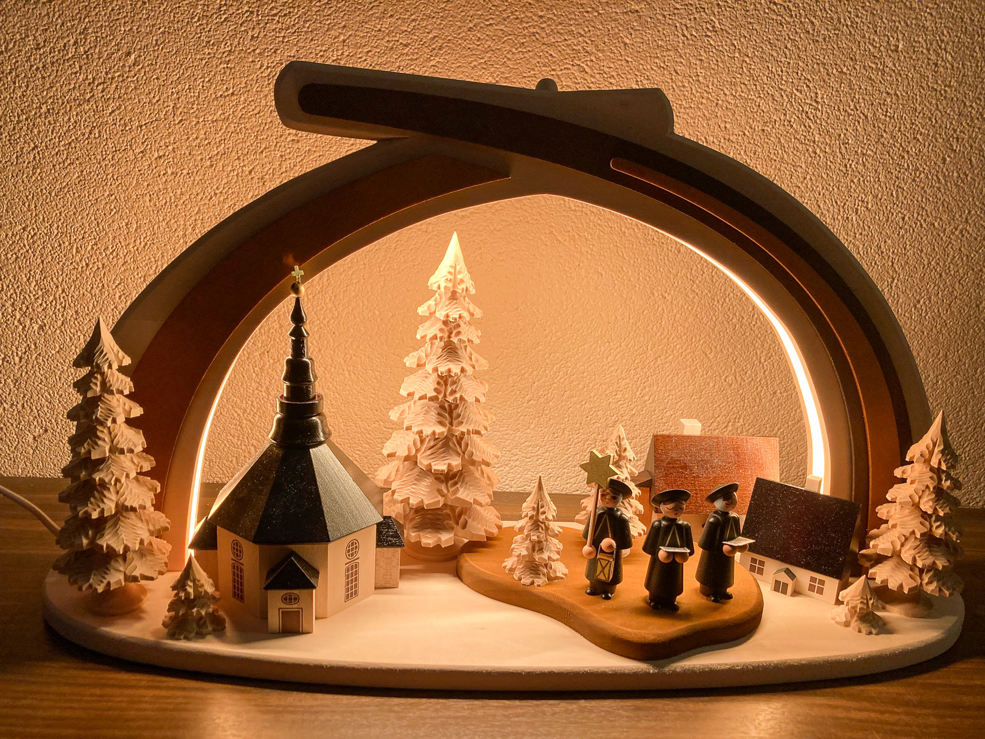 - Der Massivholzbogen "Seiffener Kirche mit Kurrendesängern" ist bei uns während des ganzen Jahres erhältlich